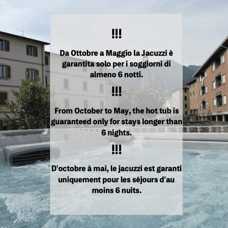 *Attenzione! da Ottobre a Maggio la vasca idro-massaggio è garantita solo per i soggiorni superiori a 6 notti.