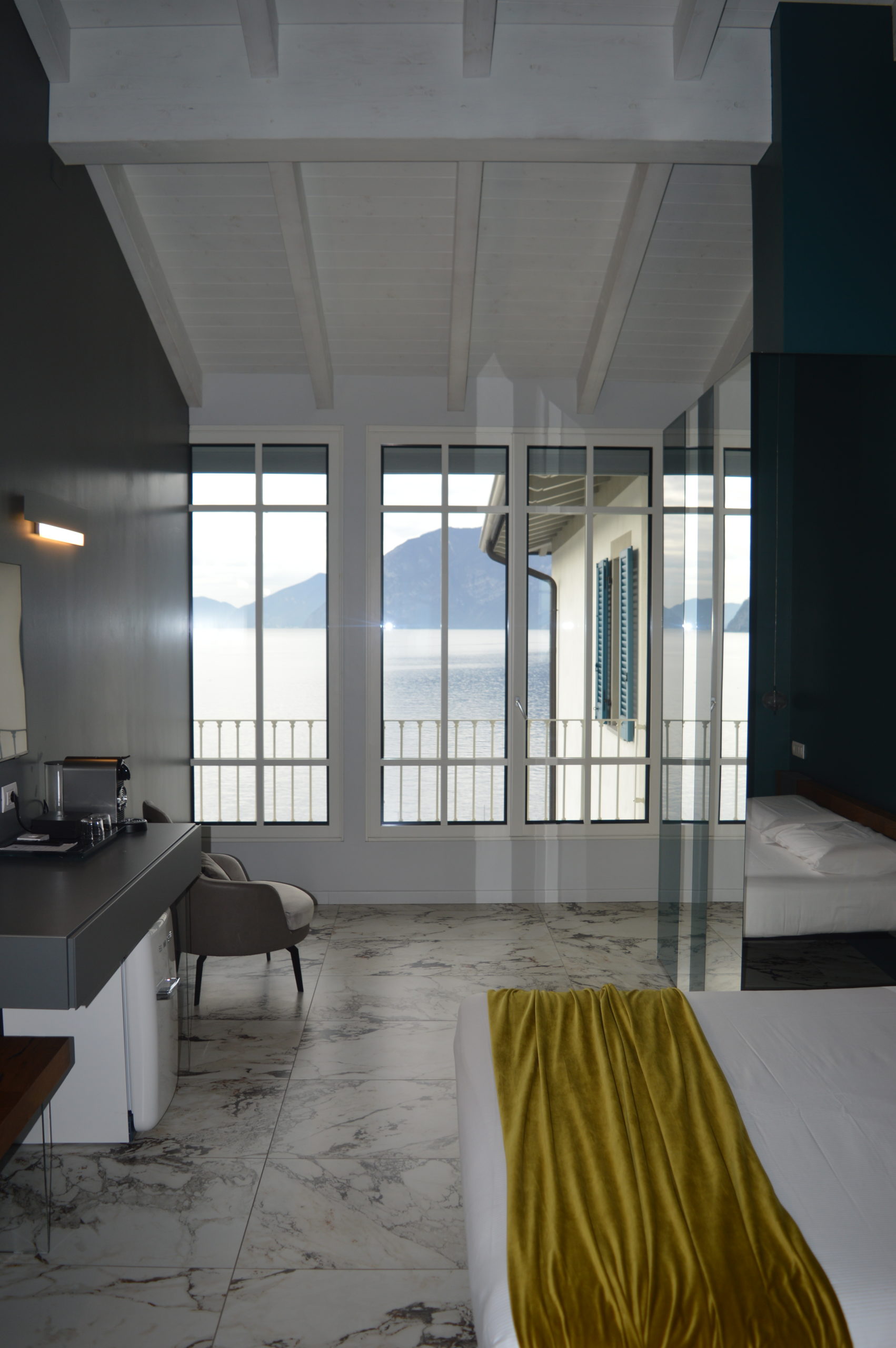 Complementi d’arredo moderni firmati LAGO DESIGN, travi antiche e vista mozzafiato rendono le Suite un ambiente raffinato, per veri amanti del buon vivere.