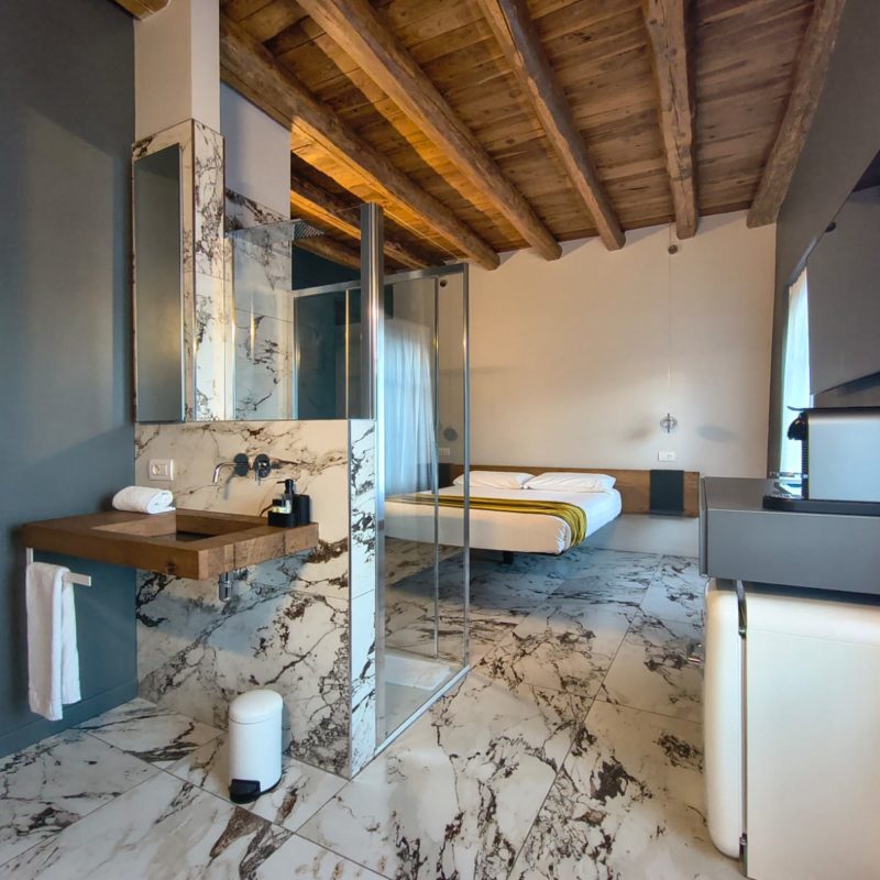 Complementi d’arredo moderni firmati LAGO DESIGN rendono le camere Queen Vista Lago un ambiente raffinato.